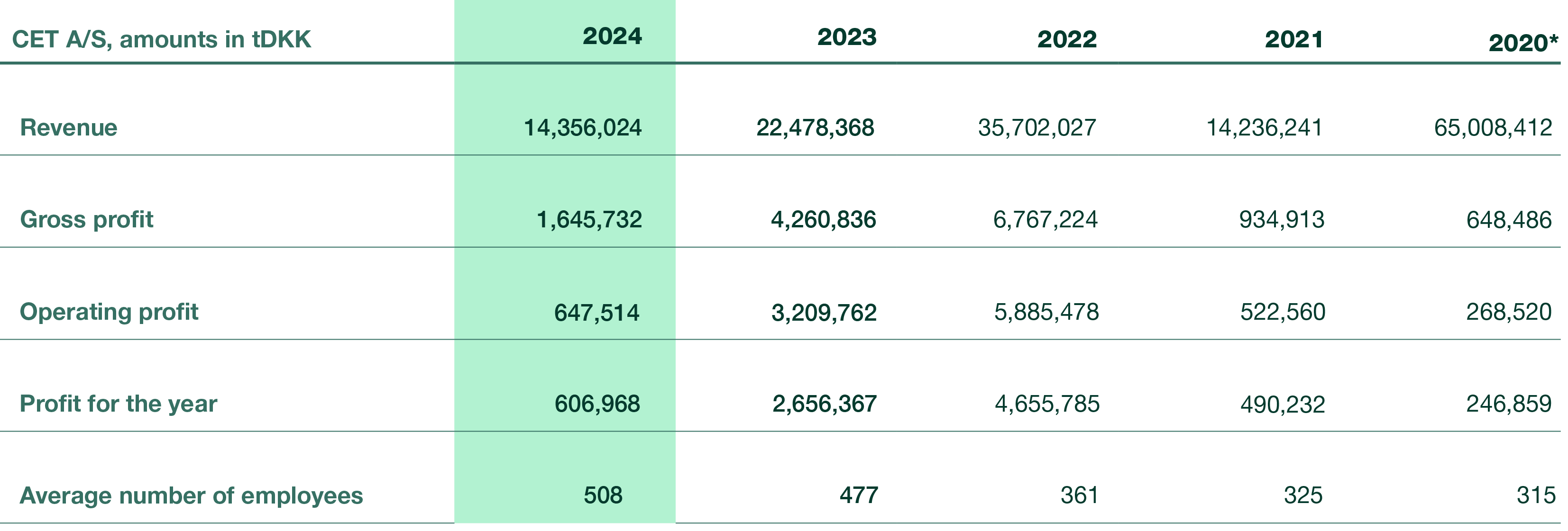a)    The Group has for the year ended 31 December 2022 prepared the financial statements in accordance with IFRS for the first time. Comparative figures and ratios for 2020 have not been adapted to reflect changes in accounting principles from Danish GAAP to IFRS. For further description refer to Note 4 in Centrica Energy Trading A/S Annual Report 2024.