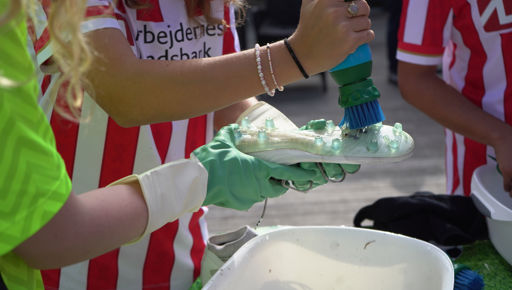 Highlight 05 Highlight 05Giving used cleats a second chance on the fieldWe kicked of our partnership with Charity Boots, a UK based charity that collects unwanted football boots and donates them to children across the world. Accompanied by our local AaB Women, our volunteers collected, cleaned, and prepared the boots for their second chance on the pitch.
